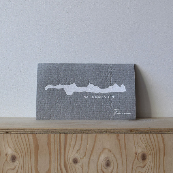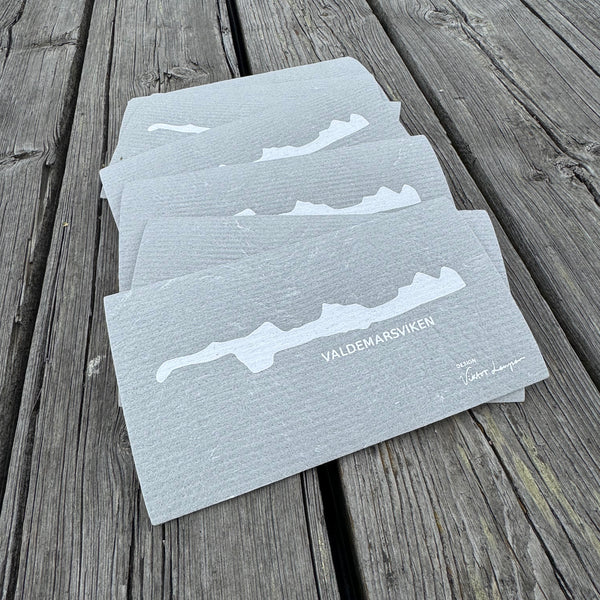 Disktrasa i 70% cellulosa 30% bomull. Säljs i par och är 25x15cm. Motiv av Valdemarsviken. Trycks med vattenbaserade färger vilket gör produkten både miljövänlig och komposterbar.